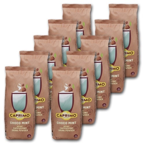 Caprimo cappuccino Contains 14.5% cocoa powder - choco mint powder; this soft and creamy cocoa drink has the rich taste of milk and a mild, rounded note of cocoa and vanilla. Read more