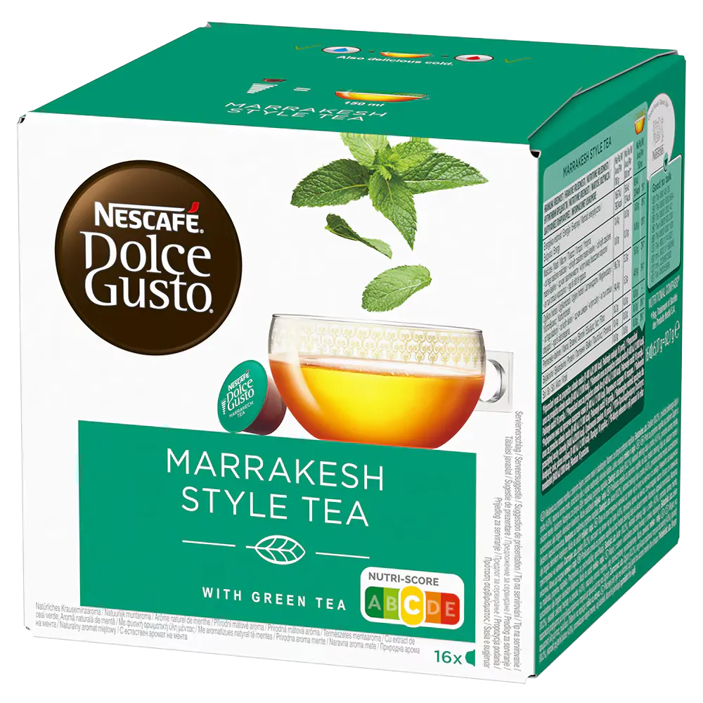 Eén Nescafé Marrakesh Style Tea capsule is goed voor één kopje thee van 150 ml en één verpakking bevat 16 capsules. De pods zijn geschikt voor gebruik in alle Nescafé Dolce Gusto machines.
