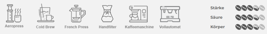 Dankzij het uitgebalanceerde profiel kan deze koffie op verschillende manieren worden gezet, waarbij de eigenschappen van de koffie in elke bereidingswijze goed tot hun recht komen: