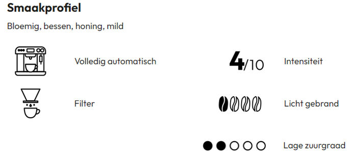 Intensiteit: 4/10 – ideaal voor liefhebbers van een milde, toegankelijke koffie