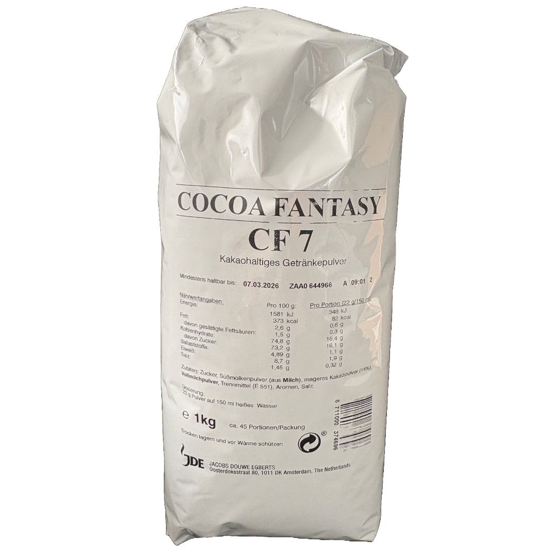 Romig en zacht melkcacaopoeder. Cocoa Fantasy Milk Smooth & Creamy is een professioneel cacao‑poeder met een cacao‑gehalte van 14%, ontwikkeld voor een rijke, zachte en romige smaakbeleving. voor warme dranken, cold brew varianten en in vending‑machines Lees meer