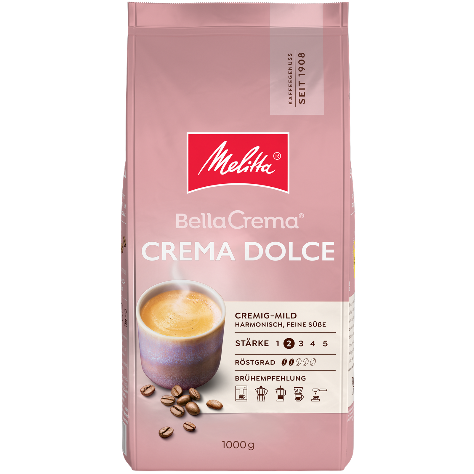 De tedere - sensuele verleiding in elk kopje koffie Onze Crema Dolce onthult de zachte kant van koffie. Een verleiding in de vorm van hele bonen die de zintuigen omhullen met hun natuurlijke zoetheid. Fijn uitgebalanceerde bonen en een zachte branding creëren plezierige momenten die de dag zoeter maken.
