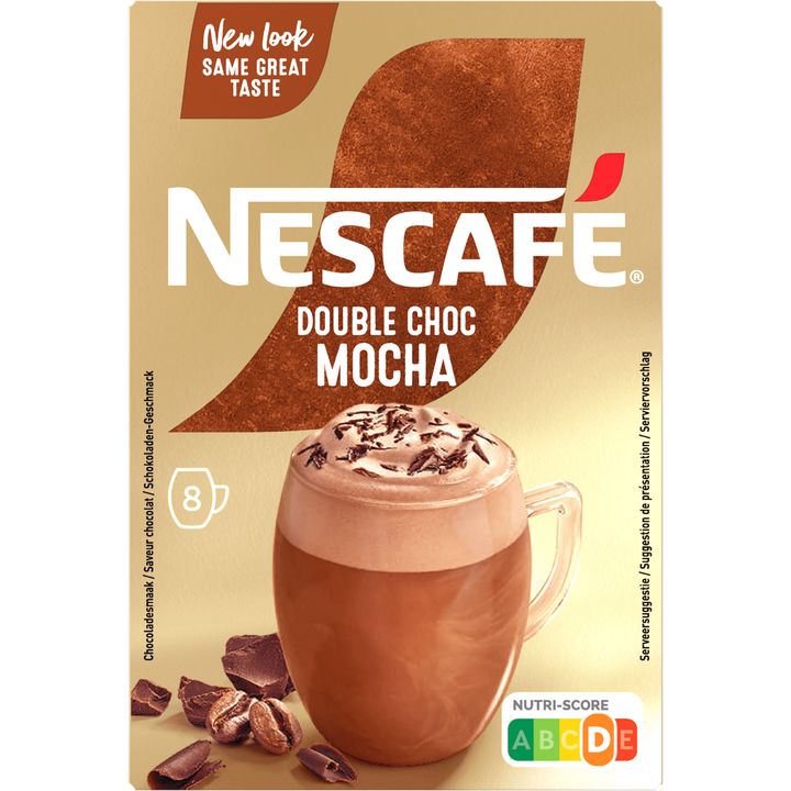 NESCAFÉ DOUBLE CHOC MOCHA, met extra chocolade en een lichte koffiesmaak, is een koffie met chocoladesmaak om van te smullen. Trakteer jezelf op een sensationeel genietmomentje met NESCAFÉ DOUBLE CHOC MOCHA.