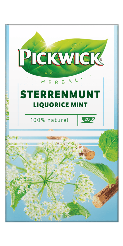 Ervaar de bijzondere smaak van Pickwick Sterrenmunt 20 stuks, een zorgvuldig samengestelde kruidenthee-blend waarin anijs, venkel, zoethout en pepermunt samenkomen voor een karaktervolle smaakbeleving.